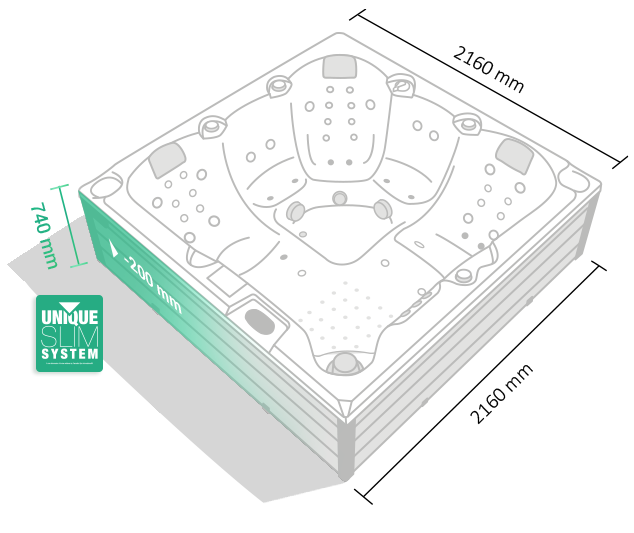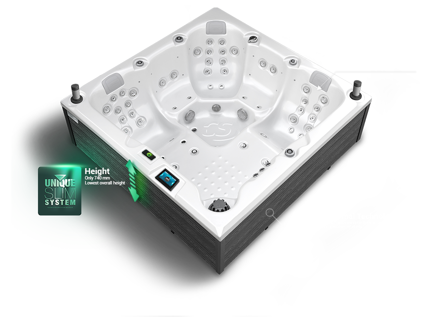 Nie je to len o množstve trysiek – ale o ich presnom účinku. Patentovaná technológia Skeleton Free Jets cielene pôsobí na konkrétne svalové partie bez zásahu do prirodzenej línie chrbtice. Výsledok? Účinná a zároveň šetrná hydromasáž, ktorá rešpektuje fyziológiu každého tela.